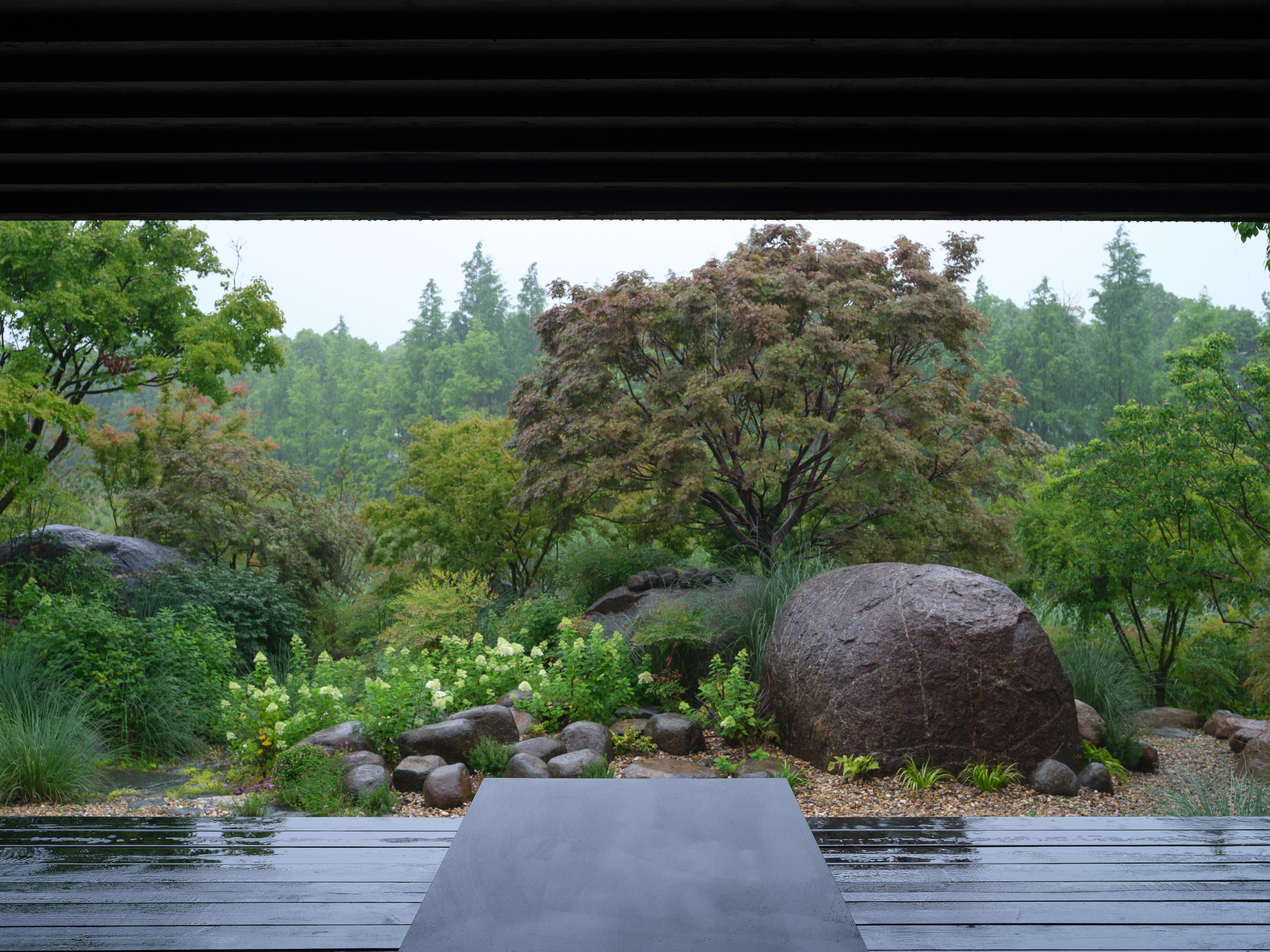 Pavilion is a contemporary wooden pavilion nestled in a lush garden setting in